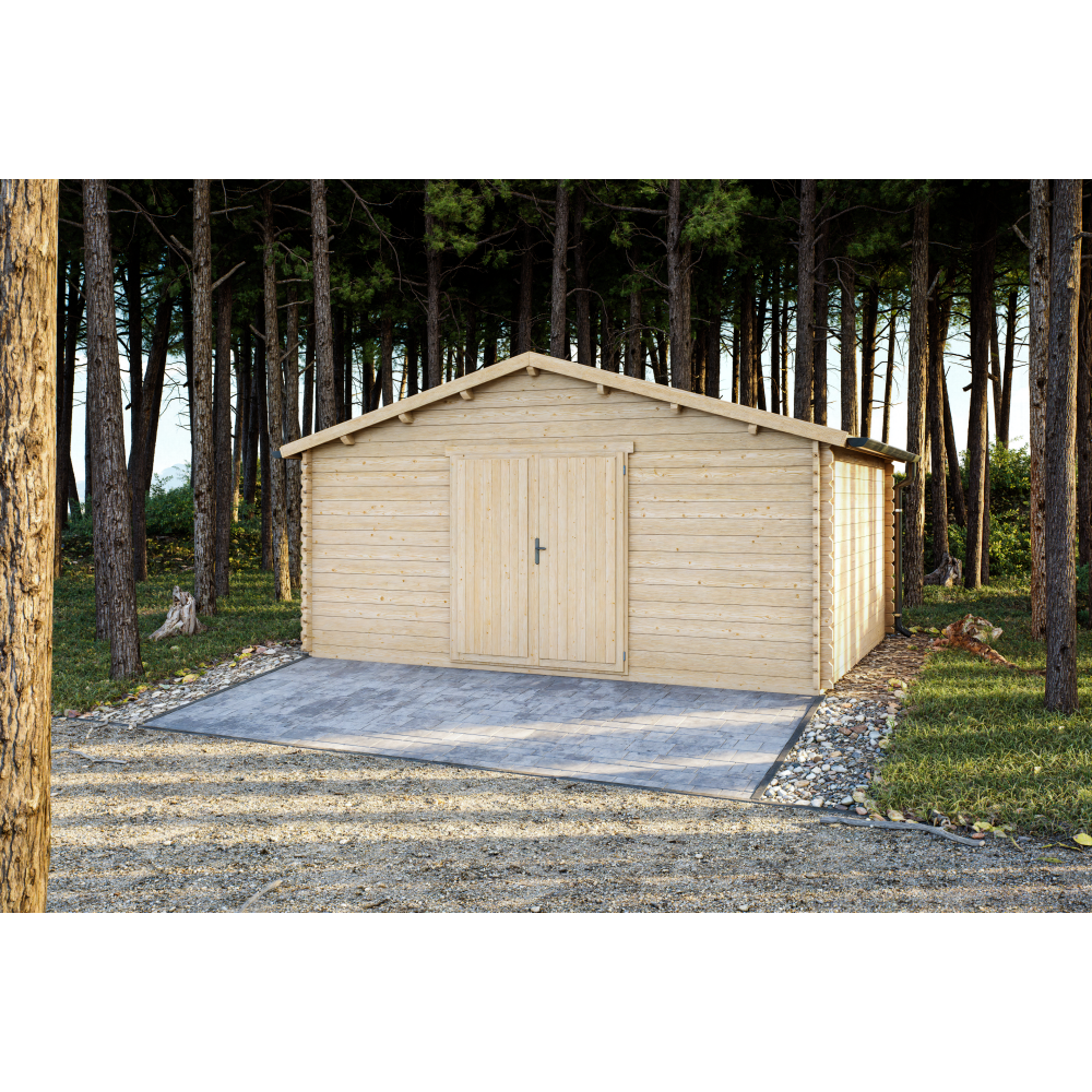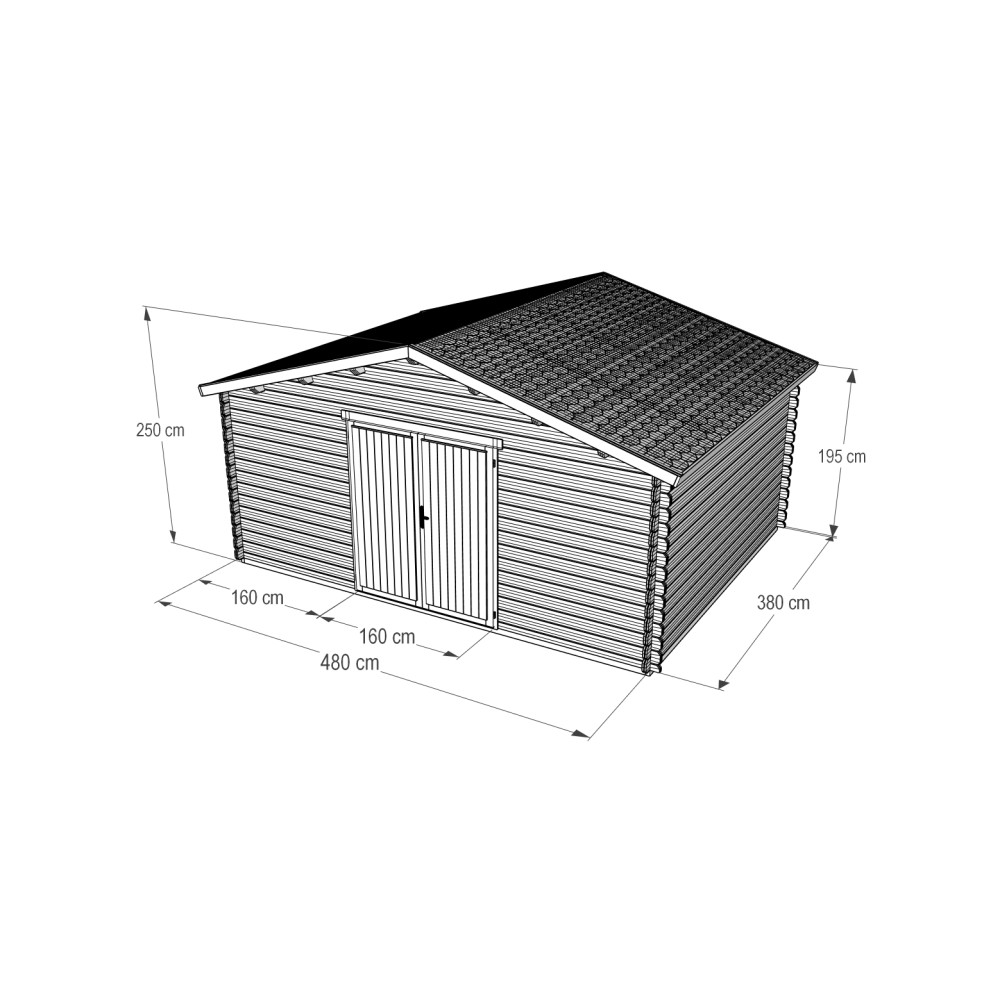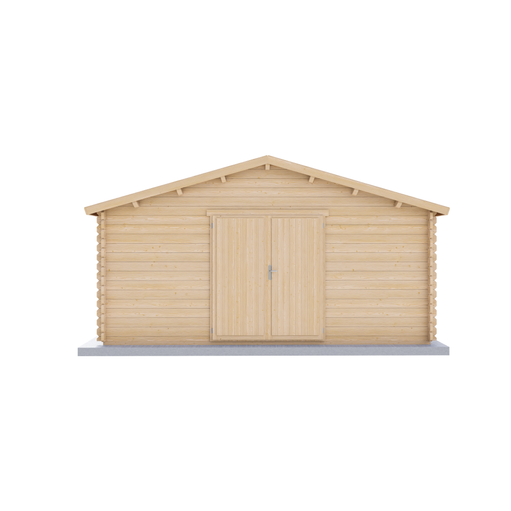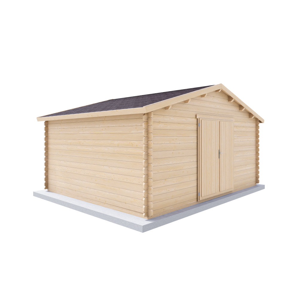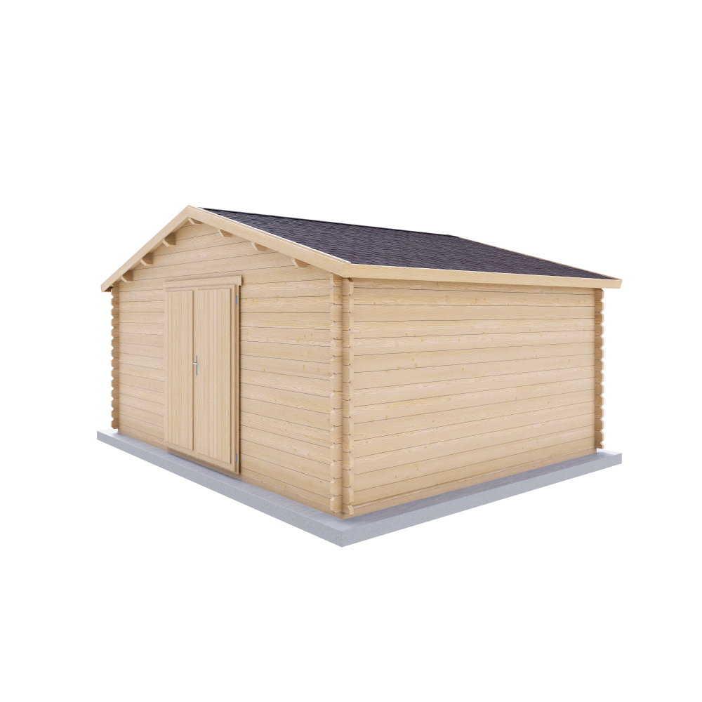 Domek má klasickou sedlovou střechu, přesné frézované spoje a dvojité jednokřídlé dveře, které umožňují pohodlný vstup i manipulaci s většími předměty. Díky prostornému půdorysu je GARDO vhodný jako dílna, zahradní sklad, prostor pro sekačku, kola, nářadí nebo sezonní vybavení.