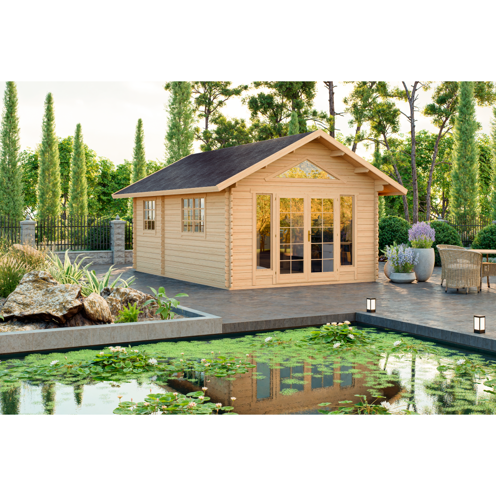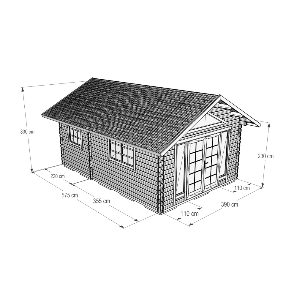 Masivní dřevěná konstrukce z kvalitního severského smrku zaručuje dlouhou životnost a příjemné klima uvnitř domku. Elegantní sedlová střecha poskytuje spolehlivou ochranu proti povětrnostním vlivům a dodává domku tradiční vzhled.