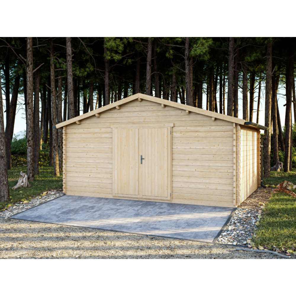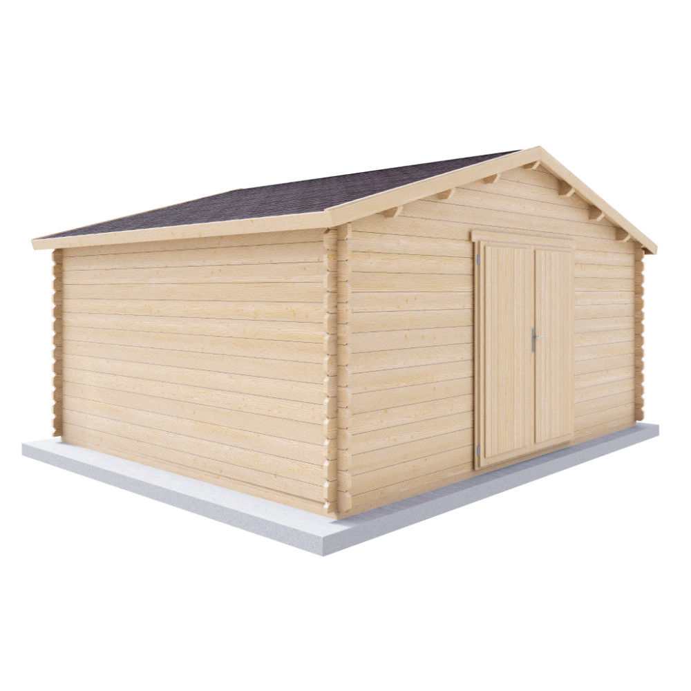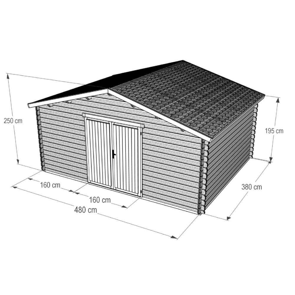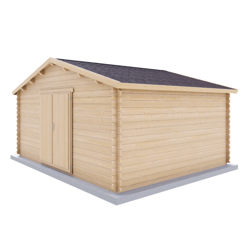 Domek má klasickou sedlovou střechu, přesné frézované spoje a dvojité jednokřídlé dveře, které umožňují pohodlný vstup i manipulaci s většími předměty. Díky prostornému půdorysu je GARDO vhodný jako dílna, zahradní sklad, prostor pro sekačku, kola, nářadí nebo sezonní vybavení.