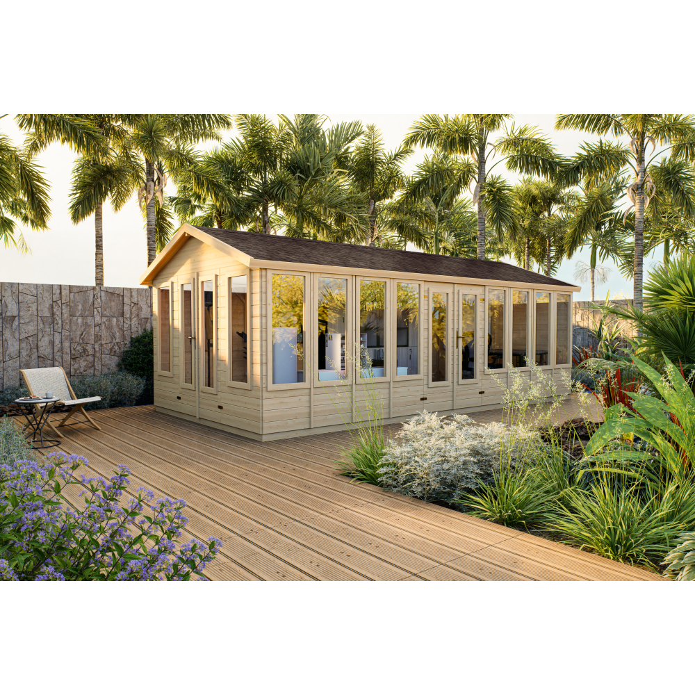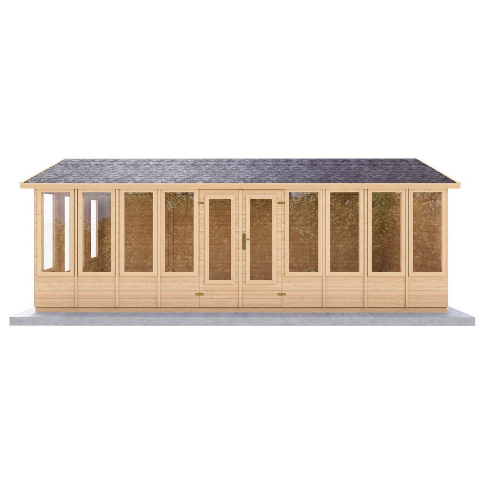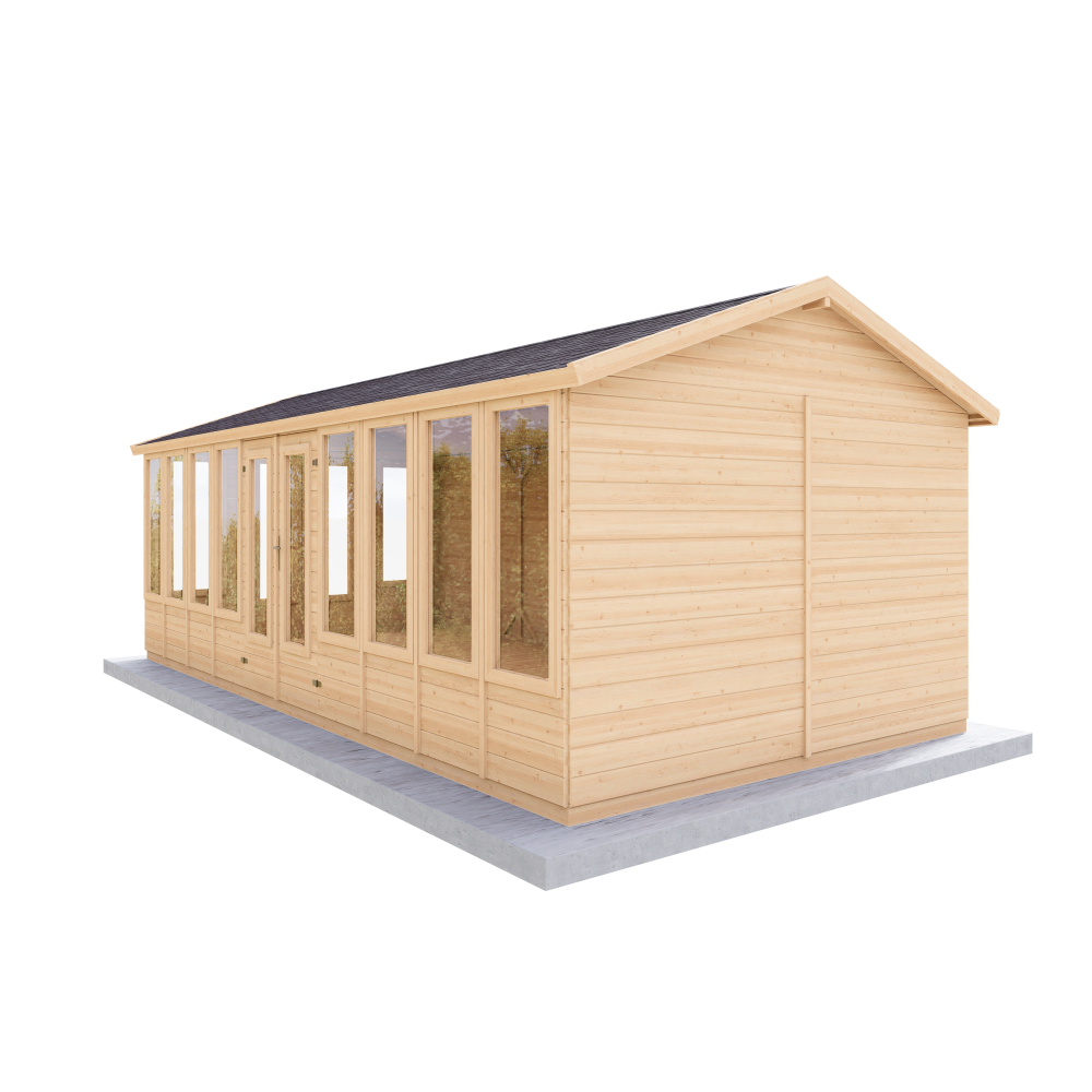 Domek je vyráběn z palubek o tloušťce 15, 19, 24 nebo 40 mm, což zajišťuje jeho stabilitu, pevnost a dlouhou životnost. Moderní design s elegantními detaily se harmonicky hodí do jakéhokoli prostředí.