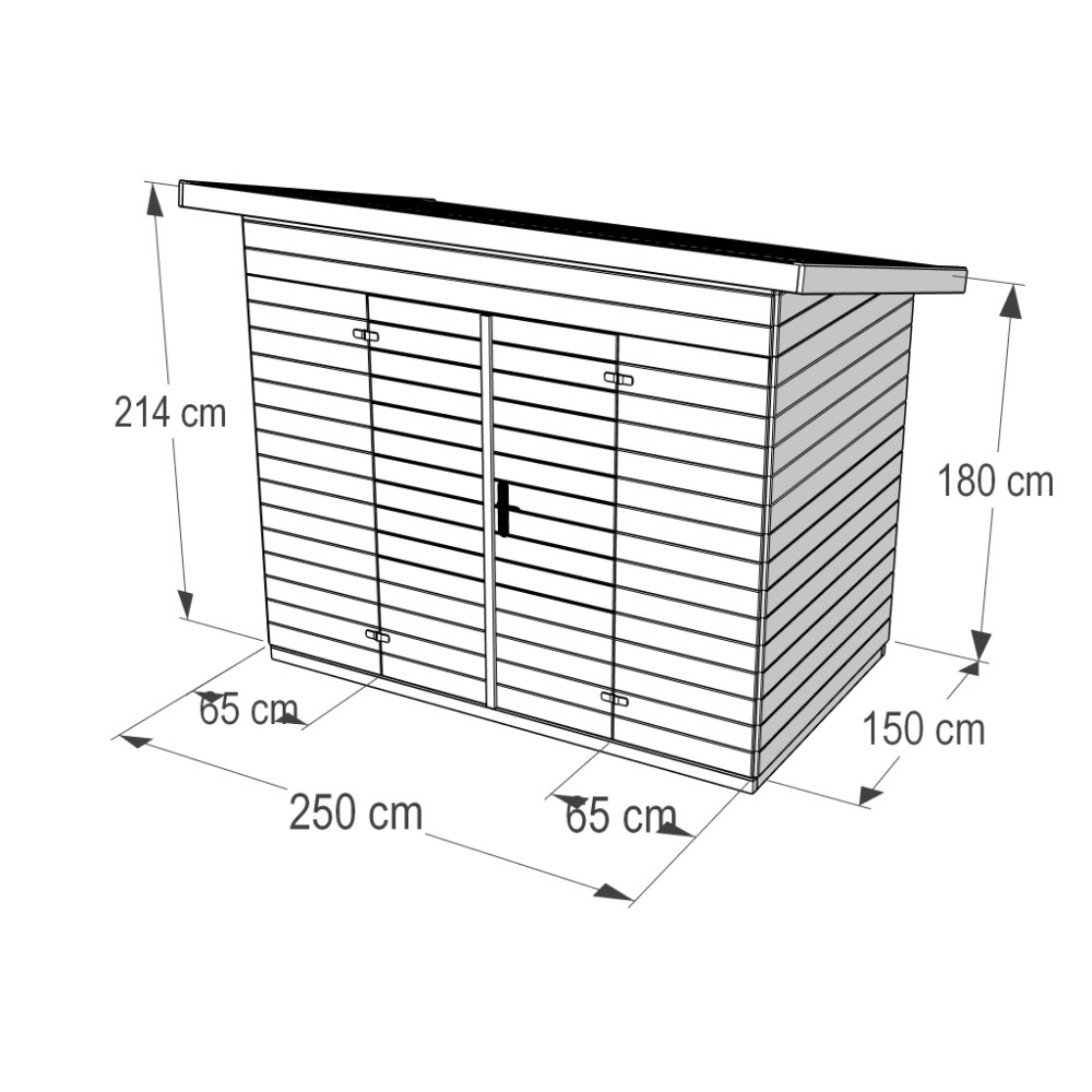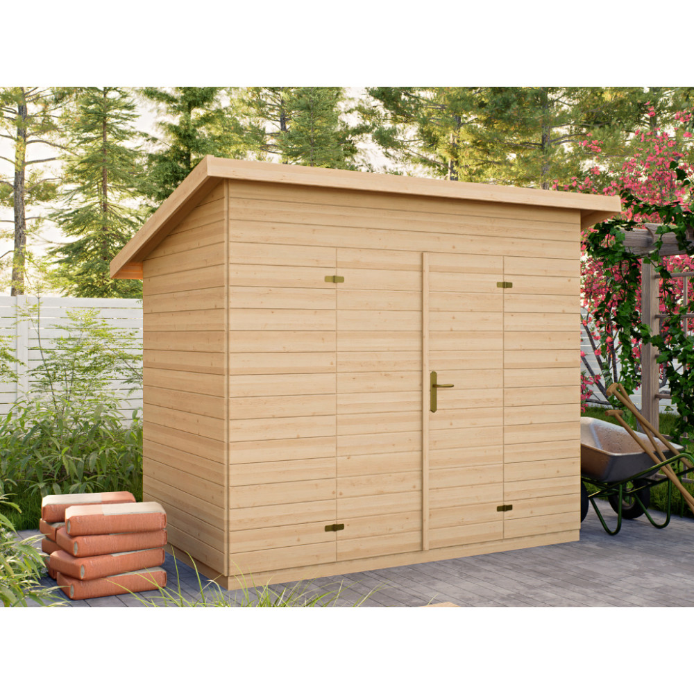 Dřevěný zahradní domek pro nářadí ADA o rozměrech 250 x 150 cm je skvělou volbou pro každého zahradníka. Tento kvalitní domek je vyroben z smrkových palubek, který zajišťují pevnost a odolnost konstrukce.