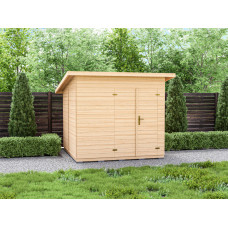Dřevěný zahradní domek KRASA na nářadí je vyroben z smrkového palubkového dřeva. Rozměry domku jsou 240 x 240 cm. Výška stěn je 180 cm a celková výška je 230 cm. Domek je vybaven dvojitými dveřmi o rozměrech 120 x 180 cm. Okna jsou zasklena polykarbo..