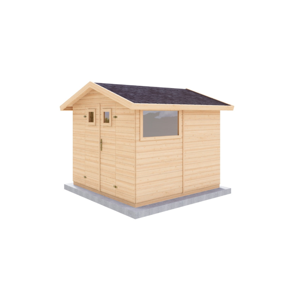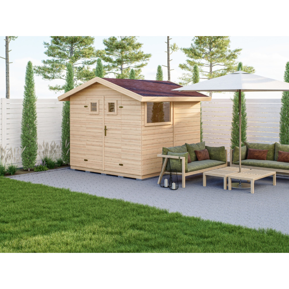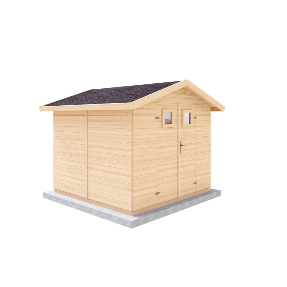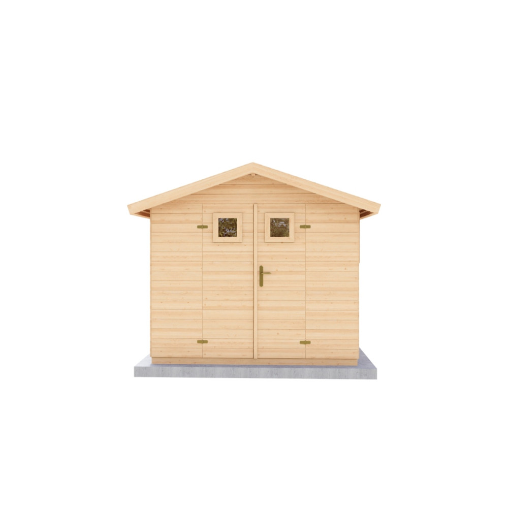 Dřevěný zahradní domek KRASA na nářadí je vyroben z smrkového palubkového dřeva. Rozměry domku jsou 240 x 240 cm. Výška stěn je 180 cm a celková výška je 230 cm. Domek je vybaven dvojitými dveřmi o rozměrech 120 x 180 cm. Okna jsou zasklena polykarbonátem, který propouští denní světlo dovnitř domku. Je také možné dat průhledné plexisklo za příplatek. Šindel na střechu objednava se taky za příplatek. Okna v dveřích mají rozměry 30 x 30 cm a okno na boku má rozměry 50 x 100 cm. V ceně domku je již zahrnutá podlaha z palubek o tloušťce 24 mm, střešní krytina ( lepenka ) a šrouby pro montáž.