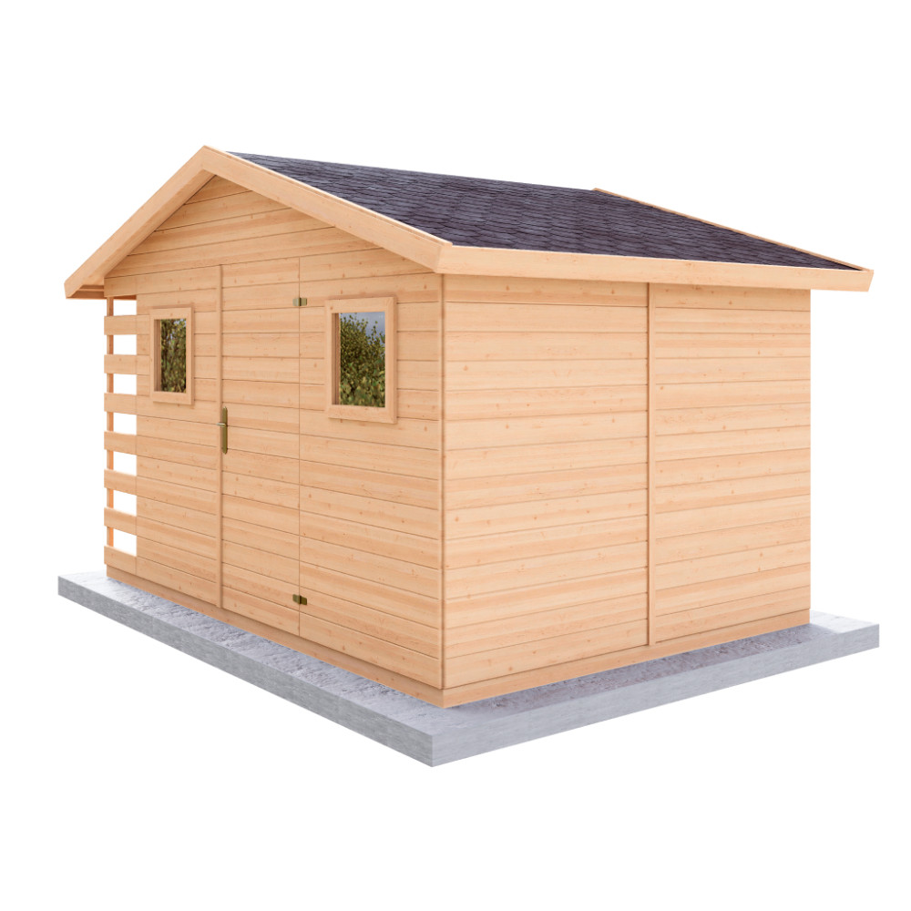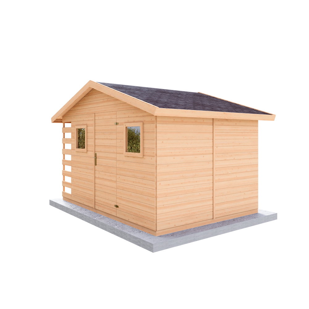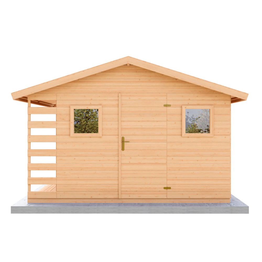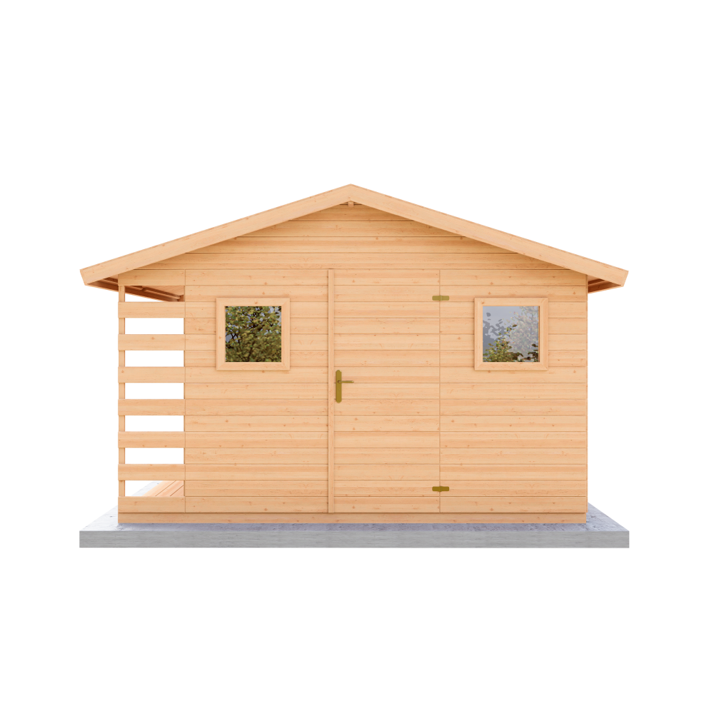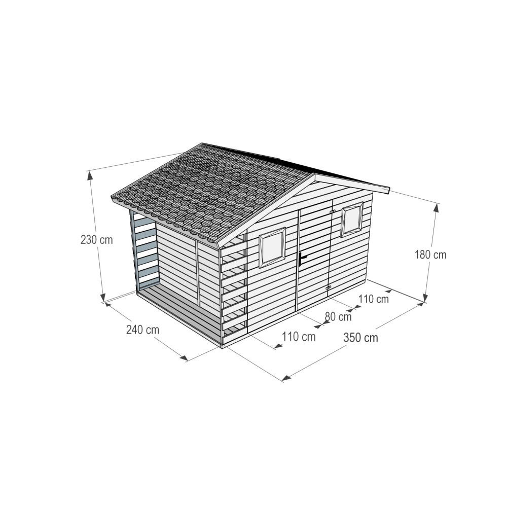 Zahradní domek LERA s dřevníkem je ideálním spojením úložného prostoru a přístřešku na dřevo. Nabízí perfektní řešení pro uskladnění zahradního nářadí, techniky, kol nebo sezónních věcí, zatímco boční přístřešek slouží k uskladnění palivového dřeva. Díky svému funkčnímu designu šetří místo a zároveň udržuje vaši zahradu upravenou.