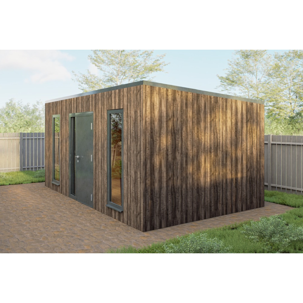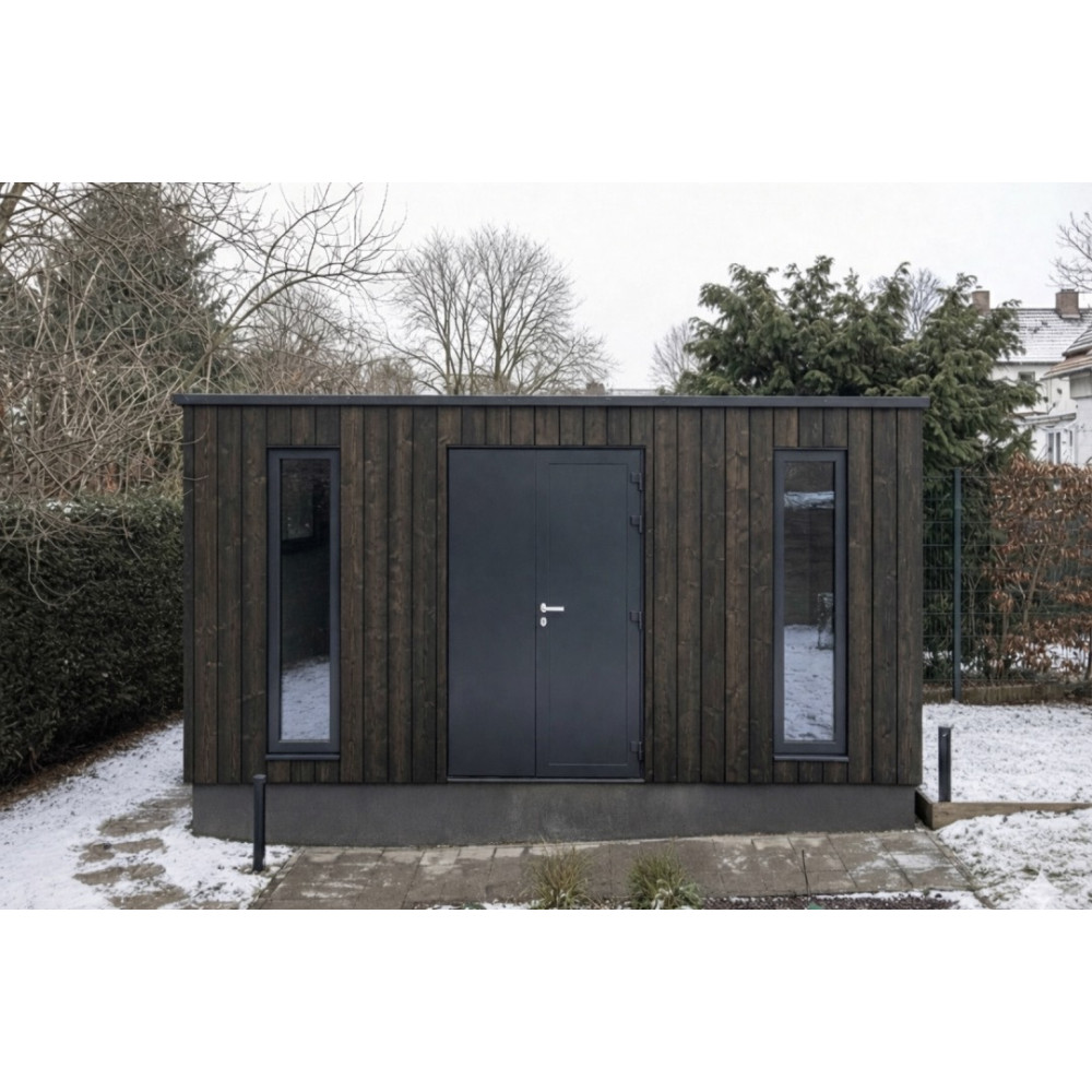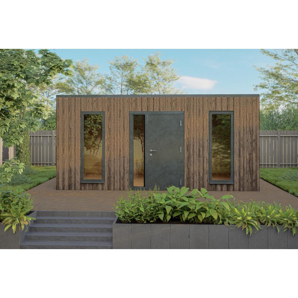 Zahradní domek LINEA (3 × 5 m) je moderní a elegantní řešení pro každou zahradu. Díky čistým liniím, vertikálnímu prosklenému oknu a kvalitnímu dřevěnému obkladu působí současně luxusně i přirozeně. Hodí se jako dílna, sklad zahradního nářadí, hobby místnost, pracovna nebo menší relaxační prostor.