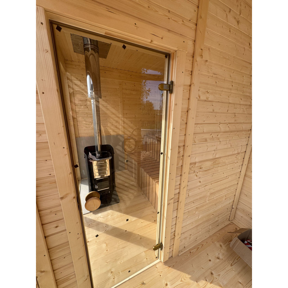 Crystal je prémiová finská sauna navržená pro ty, kdo hledají stylový design, kvalitní materiály a maximální komfort. Sauna spojuje severské dřevo, prostorný interiér a elegantní prosklený přední panel — ideální pro relaxaci a wellness doma i na zahradě.