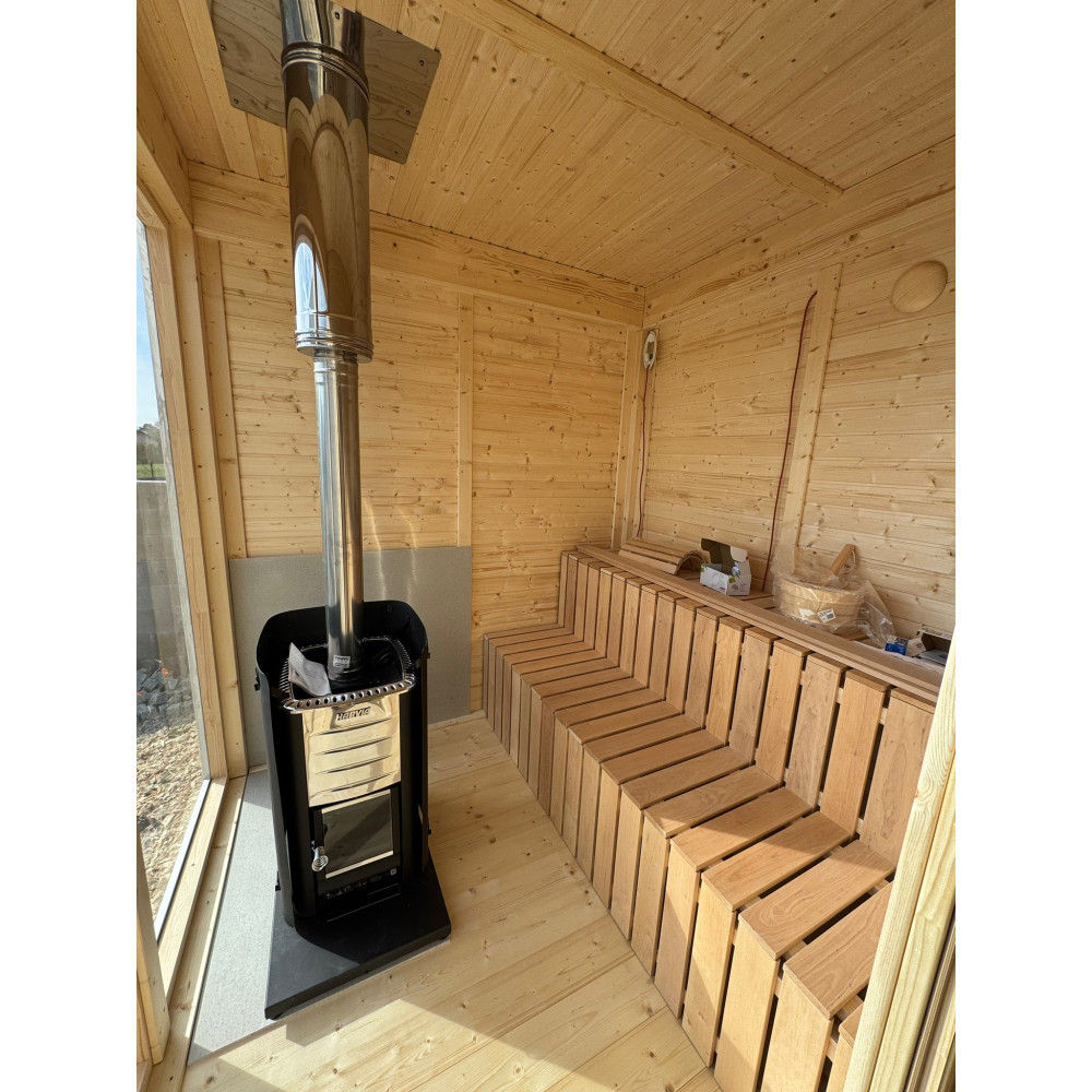 Vnitřní rozměry umožňují pohodlné saunování pro 3–6 osob (v závislosti na konfiguraci lavic a kamen). Podobné modely na trhu pojmou až 6 osob.