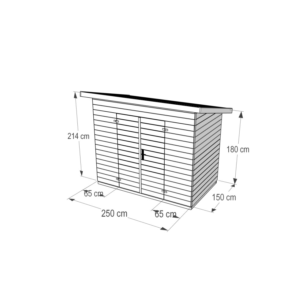 Dřevěný zahradní domek pro nářadí ADA o rozměrech 250 x 150 cm je skvělou volbou pro každého zahradníka. Tento kvalitní domek je vyroben z smrkových palubek, který zajišťují pevnost a odolnost konstrukce.