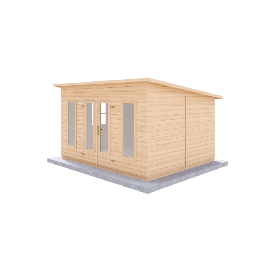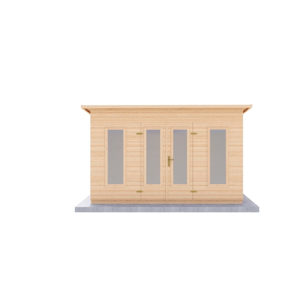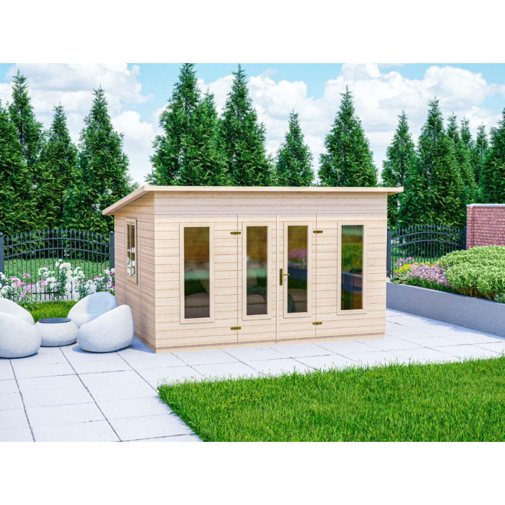 Konstrukce domku je kompletně vyrobena z kvalitních palubek o tloušťce 15, 19 nebo 24 mm podle vašeho výběru. Podlaha je tvořena deskami s tloušťkou 2,4 cm, což zajišťuje pevný základ pro vaše nářadí. Dvoukřídlé dveře jsou široké 120 cm (každé křídlo má šířku 60 cm) a vysoké 180 cm, což usnadňuje přístup a manipulaci s vaším vybavením.
