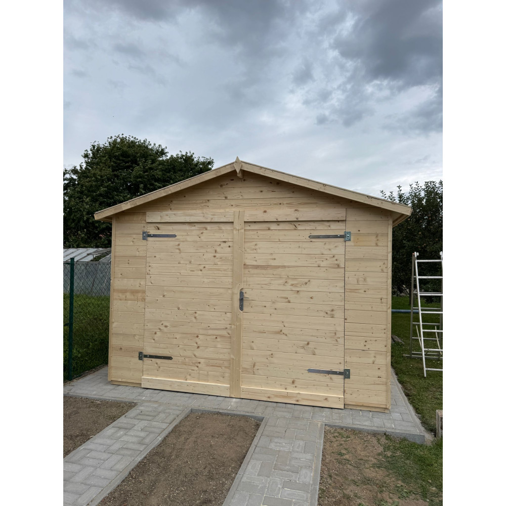 Dřevěná garáž o rozměrech 330 × 540 cm je ideální volbou pro ty, kteří hledají kombinaci funkčnosti, estetiky a kvalitního zpracování. Díky masivní dřevěné konstrukci, sedlové střeše a čistému přírodnímu vzhledu dokonale zapadne k rodinným domům, chatám i zahradám.